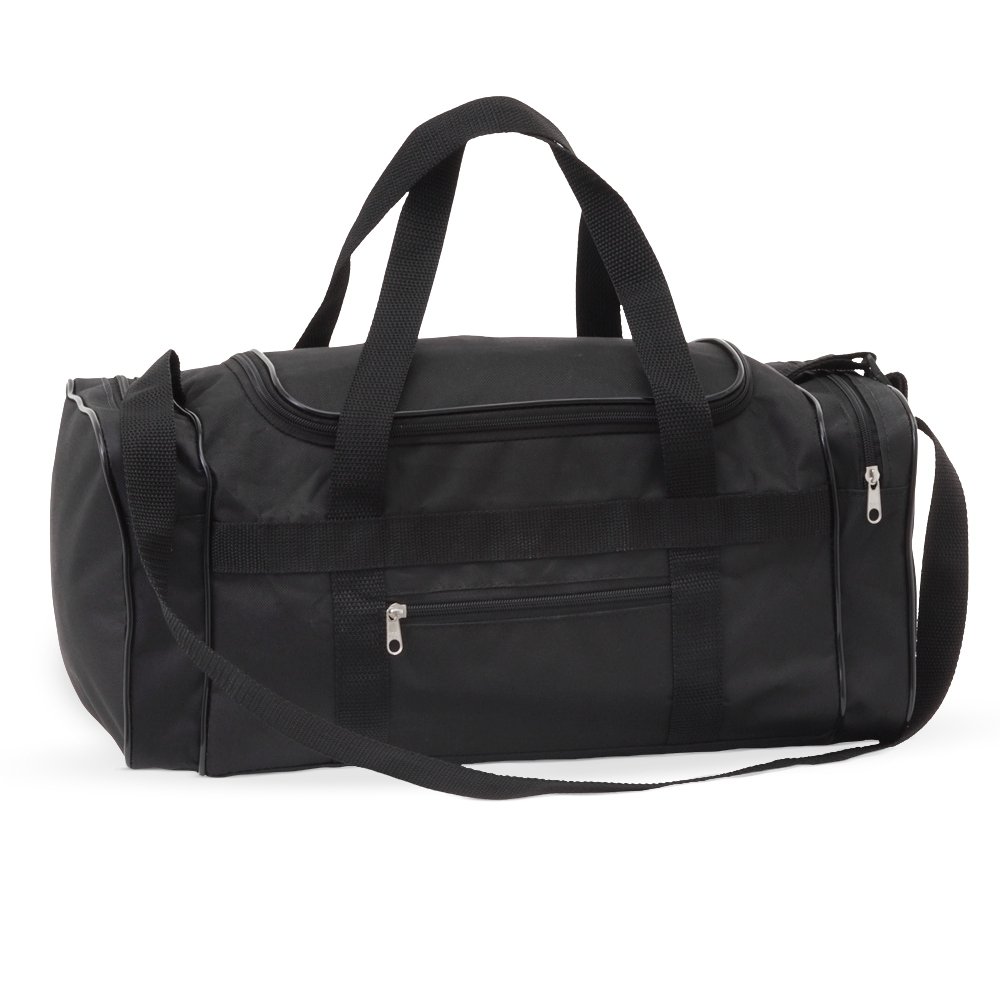 Bolsa de nylon 23 litros com quatro compartimentos, possui alça transversal regulável e alças de mãos.