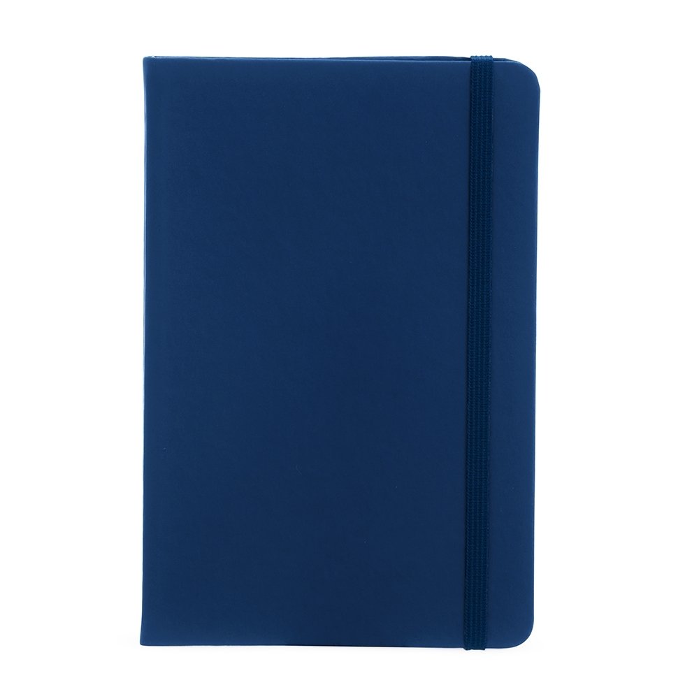 Caderneta em couro sintético emborrachado, possui marca página em cetim e elástico para lacre. Contém aproximadamente 80 folhas marfim pautadas.