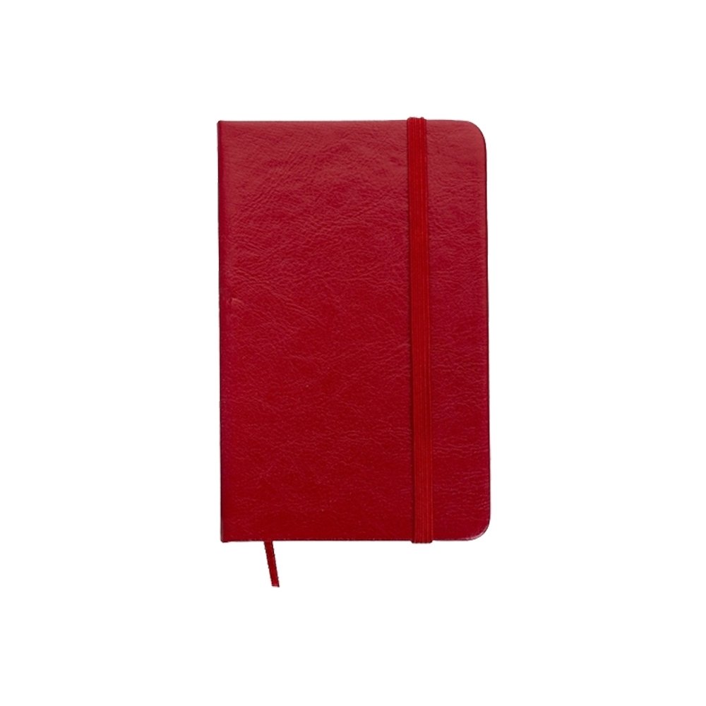 Caderneta de couro sintético com elástico para lacre e marcador de página em cetim, contém 80 folhas pautadas.