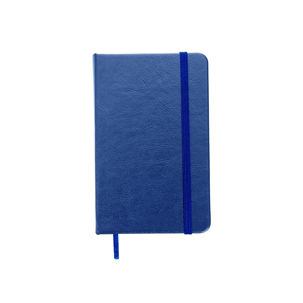 Caderneta de couro sintético com elástico para lacre e marcador de página em cetim, contém 80 folhas sem pauta.