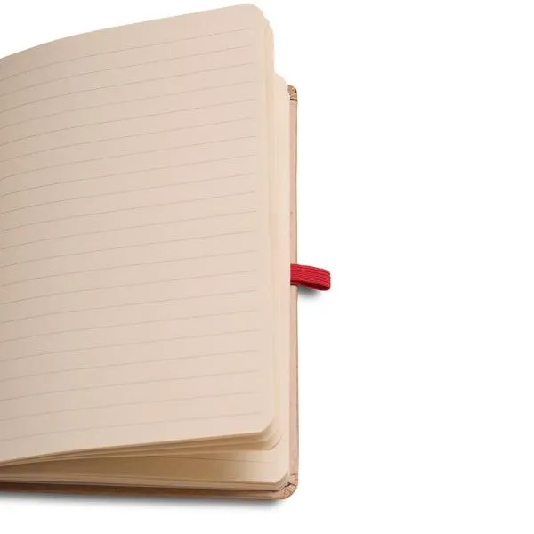 Caderno para anotações com capa dura nas cores Vermelho/Bege.