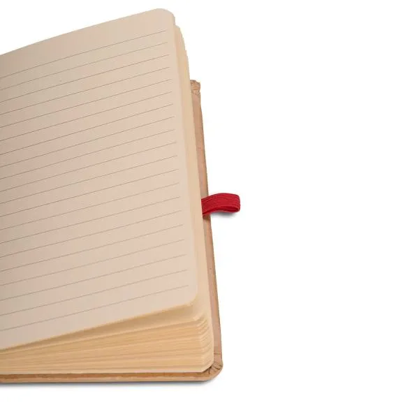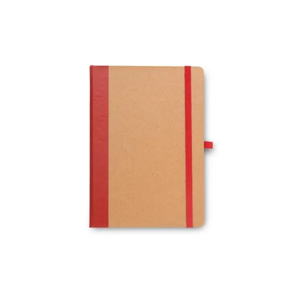 Caderno para anotações com capa dura nas cores Vermelho/Bege.