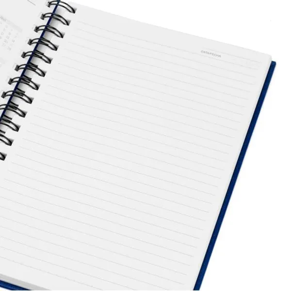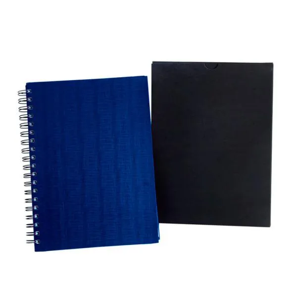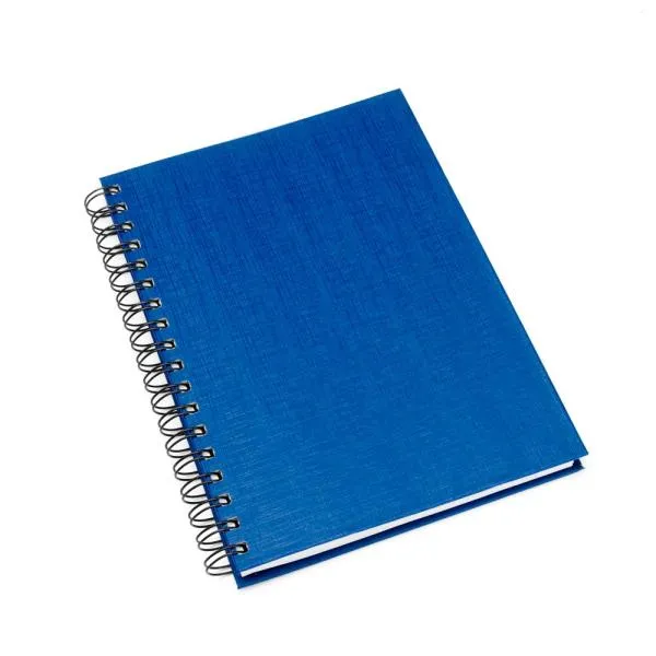 Caderno para anotações wire-o azul com capa dura revestida em percalux linho.