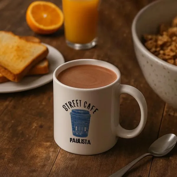 Caneca em cerâmica na cor branca.