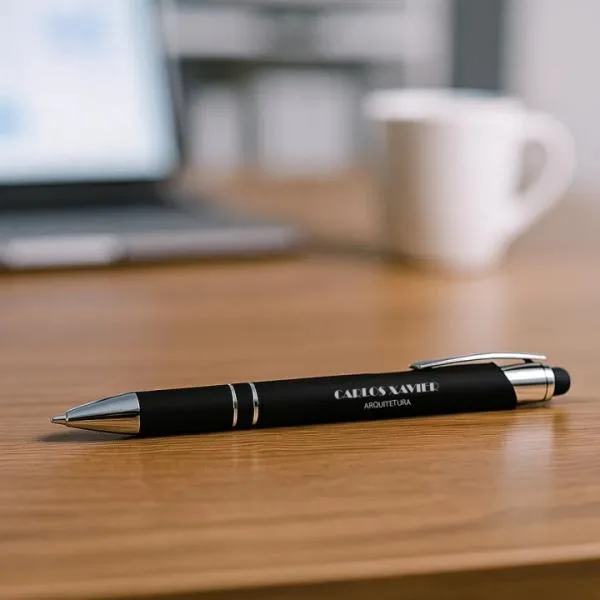 Caneta esferográfica em alumínio preta.