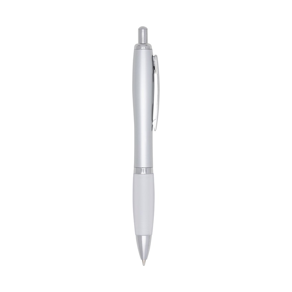 Caneta plástica com detalhe emborrachado, carga esferográfica azul e acionamento por clique. OBS.: PEDIDOS MÍNIMO DE 50 PEÇAS!