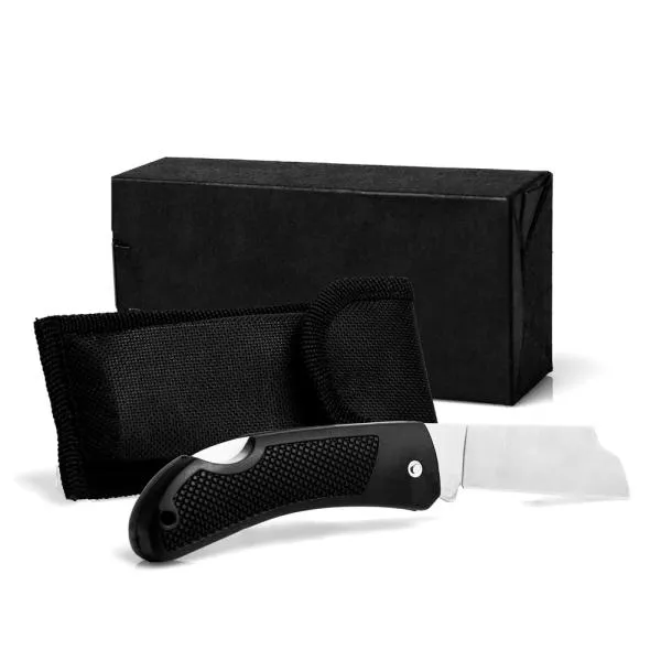 Canivete de 3 polegadas em aço inox com cabo emborrachado e bainha em nylon.