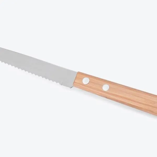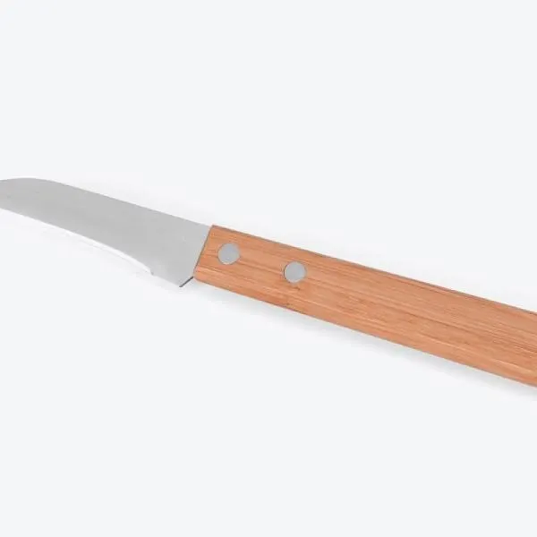 Conjunto de faca composto por faca 7” e faca 3″ para legumes em Bambu/Inox. Acompanha também faca 4″ para frutas em Madeira/Inox. Como cortesia, na faca 7″ fazemos uma gravação com os cortes do boi.