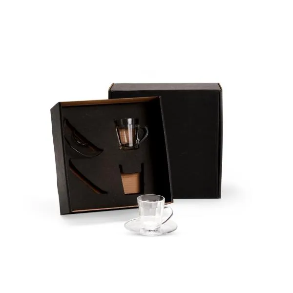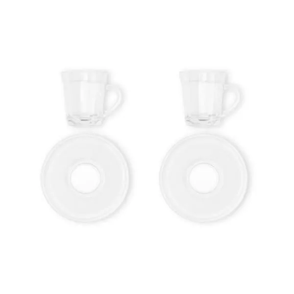 Conjunto de duas xícaras americano com pires em vidro.