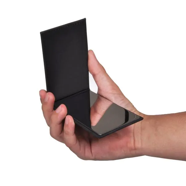 Espelho em Inox portátil com acabamento aveludado preto.