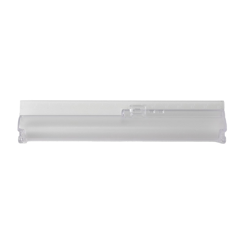 Estojo de plástico com régua de 15 cm e compartimento para uma caneta. Não acompanha caneta.