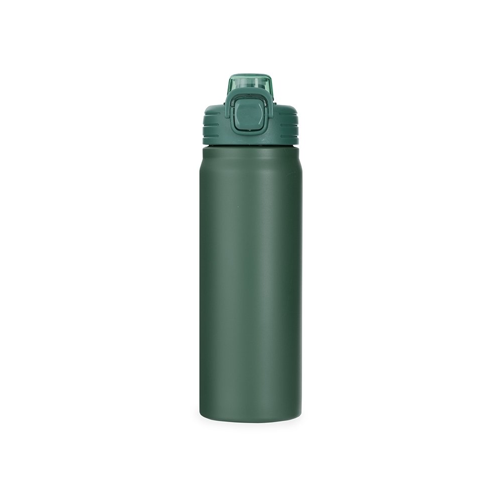 Garrafa térmica com capacidade para até 680ml. Feita em inox 304, possui estrutura de parede dupla e vedação a vácuo, permitindo a conservação da temperatura de líquidos por mais tempo. Conta com tampa rosqueável com trava de segurança, botão de acionamento para abrir a tampa protetora do bocal e alça para transporte. Acompanha um canudo plástico para encaixe no interior da garrafa.