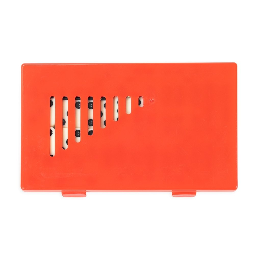 Jogo de dominó com 28 peças com detalhes em relevo. Acompanha estojo plástico com travas de fechamento.