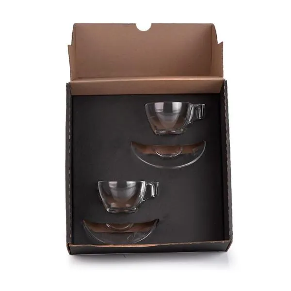 Jogo de xícaras. Kit para café contendo duas xícaras com pires em vidro.