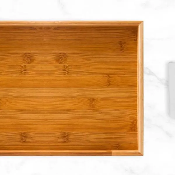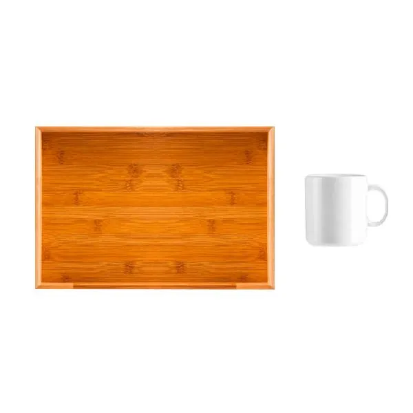 Kit para servir. Conta com bandeja em bambu e caneca em cerâmica.