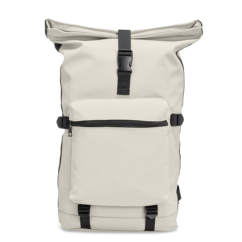Mochila de couro sintético de 41 litros resistente à água. Possui dois compartimentos, sendo o principal com bolso para notebook de 15,6 polegadas. Possui fechamento por zíper e cinto com velcro, fivelas nas laterais para maior ajuste e engate para mala de viagem.