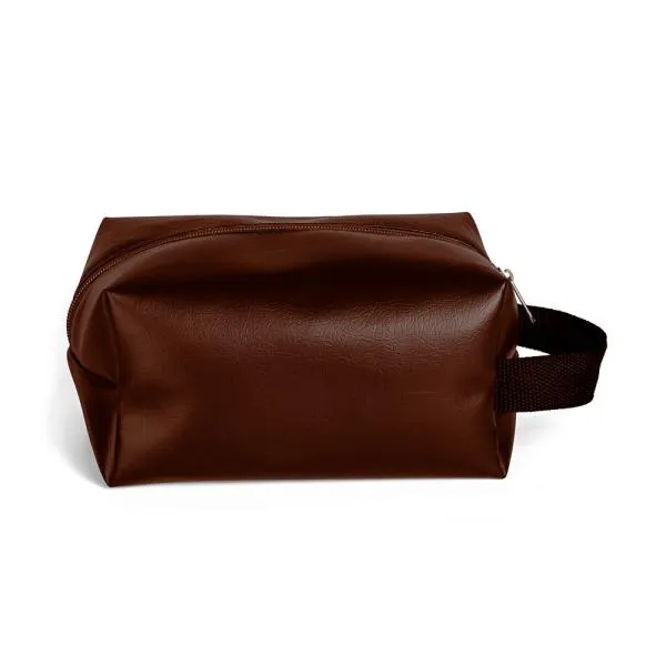 Necessaire com alça em material sintético na cor marrom.