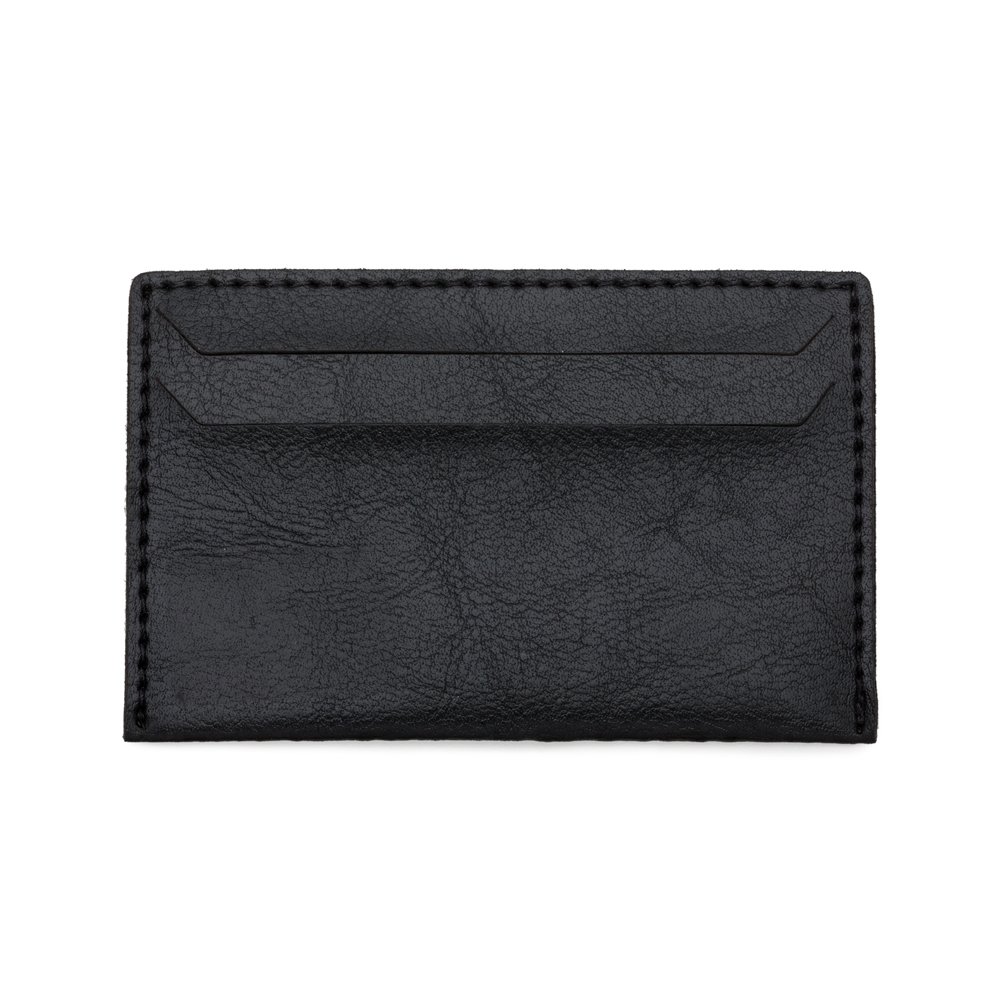 Porta cartão em couro sintético com duas divisórias frontais, verso liso.